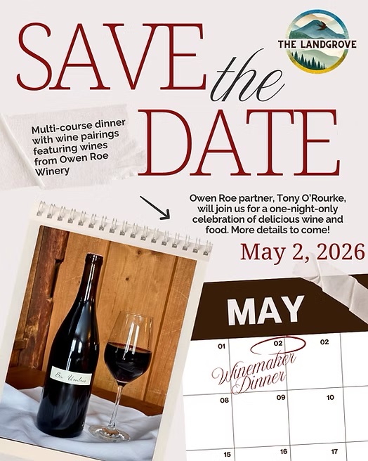 This special evening will feature a guided wine pairing in collaboration with Owen Roe Winery, a respected producer known for crafting expressive wines that reflect both structure and place. A representative from Owen Roe will lead guests through each pour, offering insight into the vineyard, the varietals, and the philosophy behind the wines—creating an experience that is both educational and deeply approachable.