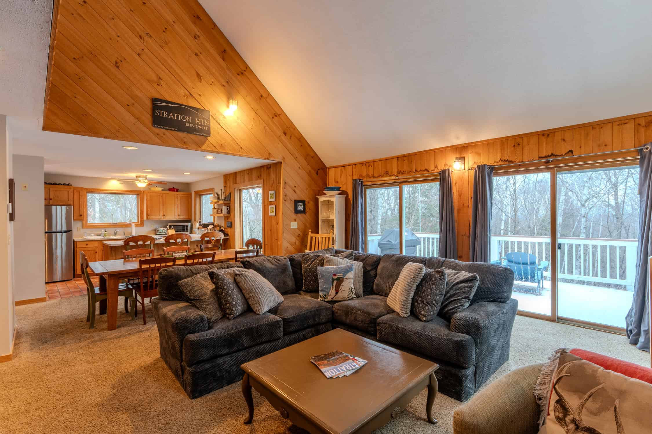 This awesome house, just 8 min from Stratton, is a great place to kick back and relax after a full day in nature! With a HUGE and amazingly soft, oversized sofa downstairs you may never want to go to bed. Fully stocked kitchen makes for easy cooking and a BBQ grill on the furnished deck is a wonderful hangout.