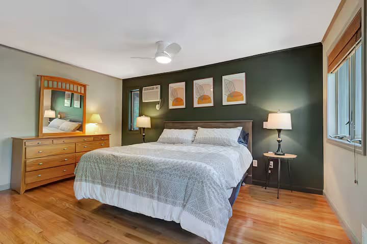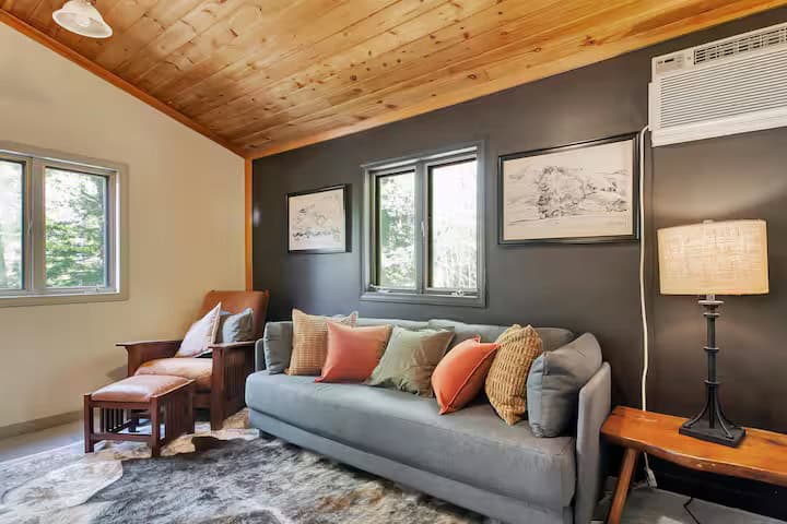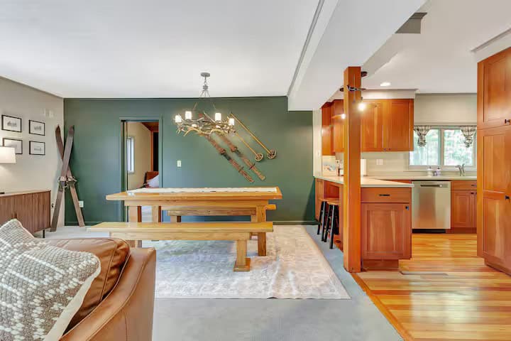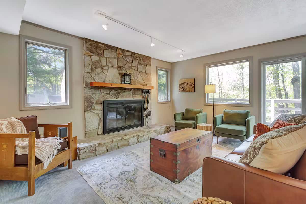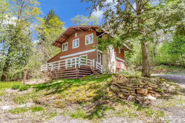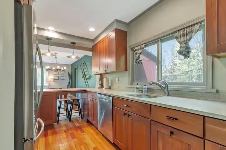 Kick back and relax in this calm and inviting home. Relax by the fire or BBQ on your patio after a long day exploring! • 3 bedroom (sleeps 6 across 4 beds) • 2.5 bathrooms • Freshly painted (2025) • Brand new furnace (2025) • A/C (still hard to come by in VT!) • Fireplace • 8 min to Stratton • 6 min to Stratton Golf • 2 min to best swimming, paddling, kayaking, etc. in the area! • 2 in WALK to the river to take a quick dip and meet some neighbors • Pet friendly The space Unwind in this cozy, updated, classic Vermont cabin. With the river right across the street you can hear the sounds of running water right from the front porch. Don't feel like going out? No problem, this house has everything you need to stay in and still have a great vacation. The updated kitchen has everything you need to cook a feast and the BBQ grill on the porch is there for your enjoyment should you feel like cooking out. On the 1st floor of this house you'll have your entry area, a half bath, the open floor plan living room/dining room and the kitchen. The washer and dryer is just through the kitchen and you're welcome to use this during your stay. On this floor you'll also have the sitting room/office space. Perfect for catching up on emails, if you're feeling so inclined. On the 2nd floor you have your bedrooms and full bathrooms. The master bedroom has a brand new comfy mattress (2025) and a large master bathroom with a single sink but double vanities so you have plenty of space to get ready. This bathroom has a tub/shower combo. The 2nd bedroom also has a brand new mattress (2025) and a ceiling fan. This bedroom shares a full bathroom with the 3rd bedroom. This bathroom has a large shower stall with plenty of elbow room for your washing needs. 🙂 The 3rd bedroom has 2 twin beds and a ceiling fan. Feel free to push them together to make a King!
