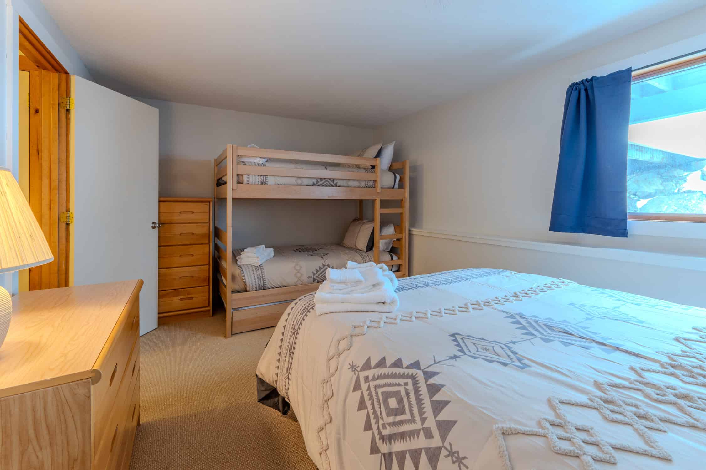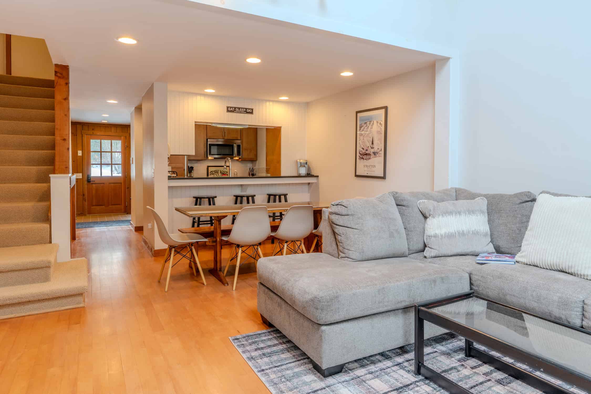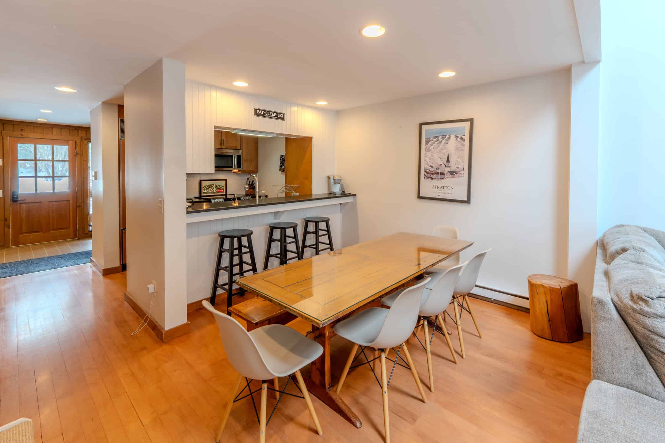 Perfect for your Stratton getaways! ~50 yard walk gets you to the path at the end of the parking lot. Skiing: walk just a little ways down the path, strap in and skate! Snowboarding: you might end up walking the path but it's only about 450 yards! Non-skier: Shuttle or walk to the village for some fun! • 3 bedrooms (1 King, 1 King, 1 Queen + a set of twin bunks & trundle) • 2.5 bath • Ski/Walk on/off • Shuttle route • 1 min drive to Stratton • Community hot tub & game room • Seasonal pool The space Perfect for your weekend, week or longer stays, this Slope Side townhome provides you with everything you'll need to enjoy your time at Stratton. Park your car and don't worry about driving for the rest of your trip! ~50 yard walk gets you to the path at the end of the parking lot. SKIING: walk just a little ways down the path, strap in and skate! Please Note: Early and late season you may end up walking about 1/2 the way. Main season this path is groomed and more skate/skiable. SNOWBOARDING: you might end up walking the path but it's only about 450 yards! PART OF YOUR GROUP NOT INTO WALKING: drive 1 min up the Slope Side road and drop them at the community center for a super easy ski on/off. You can NOT leave the car at the community center. 1 of you would have to drive back and then take the path over. NON-SKIER: Shuttle or walk to the village for some fun! Walk to the village for shopping, food, drinks and night time fun. Enter into the mud room and ditch all your bulky stuff. Half bath right off the entry in case you've been stuck in the car for 5 hours or didn't want to stop having fun while you were out there! Continue on the main entry level into the open kitchen and living room space! You'll have a 65 inch Smart TV to cuddle up in front of the wood burning fire to. The full kitchen has everything you need to stay in and unwind after a busy day. Travel up the steps to your master lost. This loft has been updated and is fully enclosed for your privacy! A large glass wall even lets you still spy on the kids if they didn't feel like going to bed yet. Lol. This huge master suite area has a reading nook and a full bathroom with a shower. A large dresser and closet provides tons of room to put all of your stuff away so you're not living out of a suitcase. A new (2025) 55 inch Smart TV makes sure you don't miss any of your shows while you're away from home. Downstairs you'll find your other 2 bedrooms and the 2nd full bathroom. The 2nd bedroom has another King bed and tons of storage for your unpacking needs. The 3rd bedroom is just perfect for a 3rd couple or all the kids! There's a Queen bed and a set of twin beds for them to spread out and have fun. There's also a trundle under the bunk beds in case a bit of overflow is needed!! Just a 2 min drive or a 7 min walk will get you to the community hot tub, seasonal pool, and community center with a pool table, foosball, large TV and sofas! • 3 bedrooms (1 King, 1 King, 1 Queen + a set of twin bunks with trundle) • 2.5 bath • Ski/Walk on/off • Shuttle route • 1 min drive to Stratton • Laundry on site • Community hot tub (covered with an overhead heater!!) • Community game room with ping pong, foosball, a kitchen, sofas, a dining table, TV and 2 bathrooms; 1 with a shower! • Seasonal pool SORRY! As much as we LOVE hosting your fur babies - this is condo/HOA rule and only the home owners are allowed to bring pets 🙁